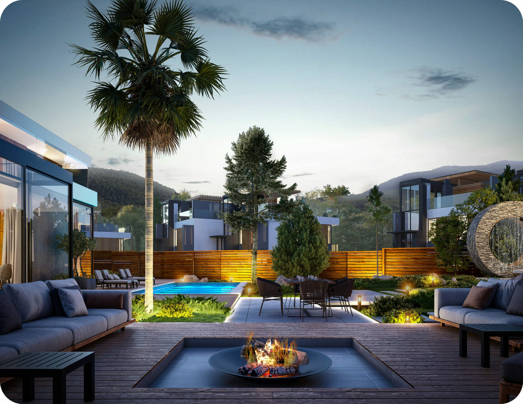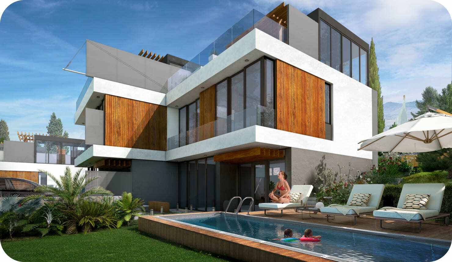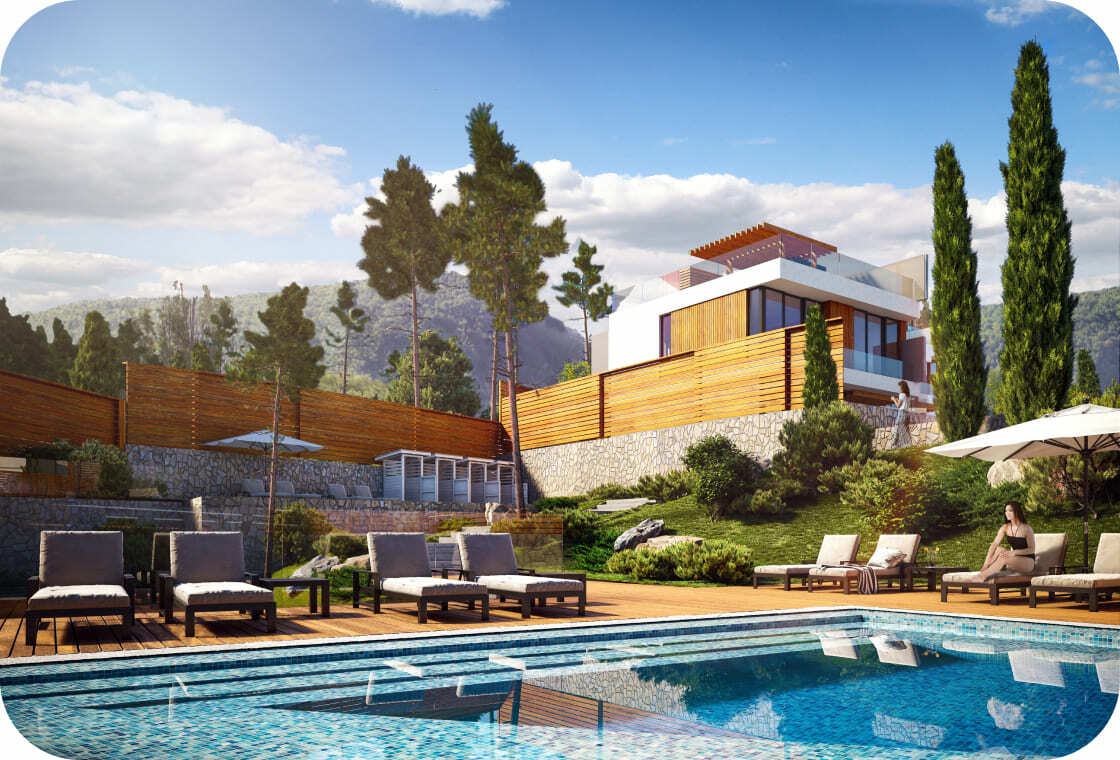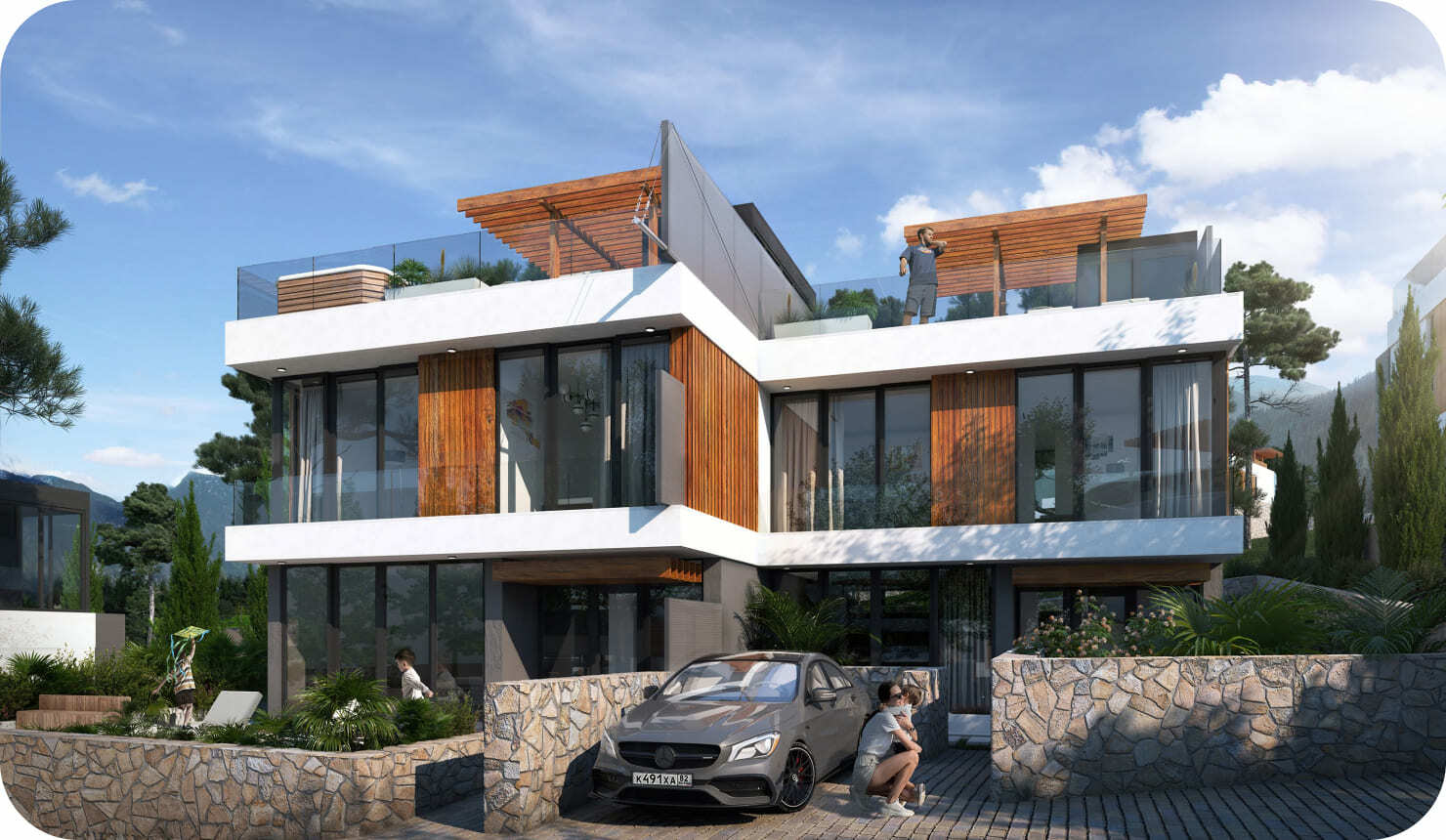 Танхаусы с эксплуатируемой крышей, большие виллы с бассейнами