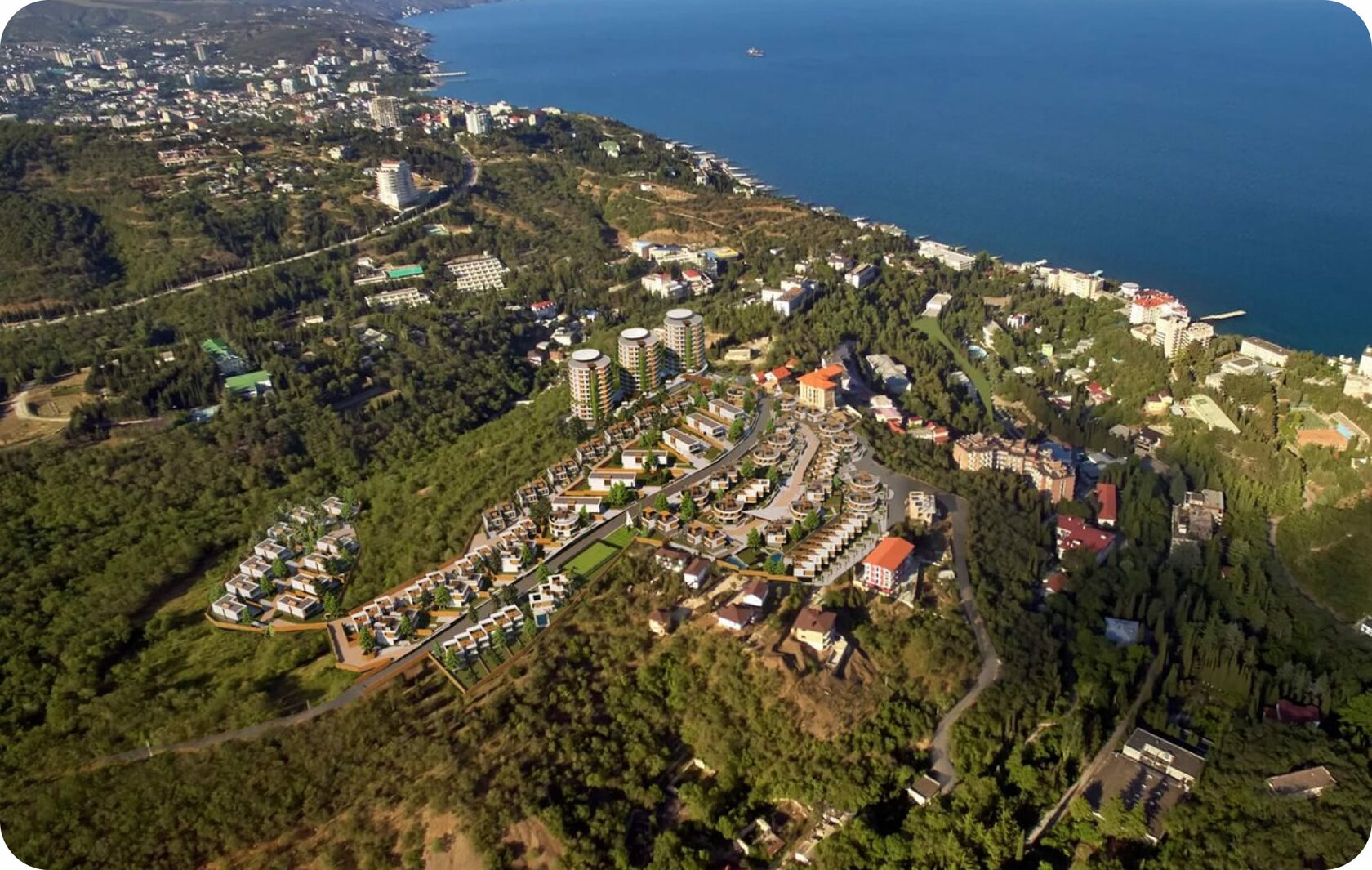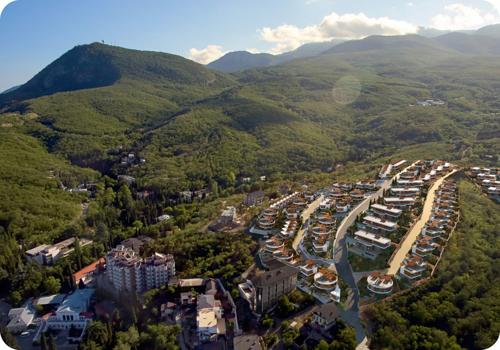 Коттеджный поселок находится в одном из самых живописных и экологически чистых мест Крыма, в Профессорском уголке — крупнейший горный заповедник на территории полуострова. Всего в 15 минутах ходьбы расположились благоустроенные пляжи города Алушты и широкая многокилометровая набережная с разнообразной курортной инфраструктурой.